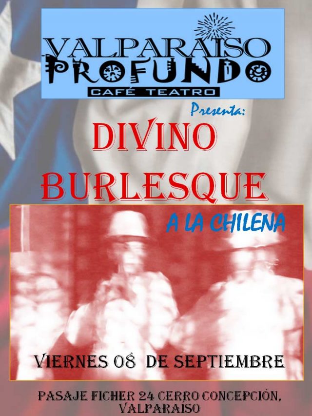 Así, y por segunda vez en este año, regresa al café-teatro Valparaíso Profundo, Divino Burlesque, esta vez A LA CHILENA, con un espectáculo lleno de variedades, de arte y sensualidad que rinde homenaje escénico al Varieté, al Voudeville y al Cabaret con las mejores intérpretes del género y con las distintas tendencias que las identifica a cada una. En esta temática «a la Chilena» se rendirá homenaje a artistas chilenos reconocidos como son Rosamel Araya, la gran Cecilia, José Alfredo Fuentes, Chico Trujillo, Los Picantes, Lucho Gatica, entre otros. El espectáculo contiene montajes individuales y grupales, desarrollando puestas en escenas con discurso y sarcasmo apoyadas por imágenes audiovisuales, creando un metalenguaje corporal y estético lleno de glamour, brillo, magia, humor y sensualidad.