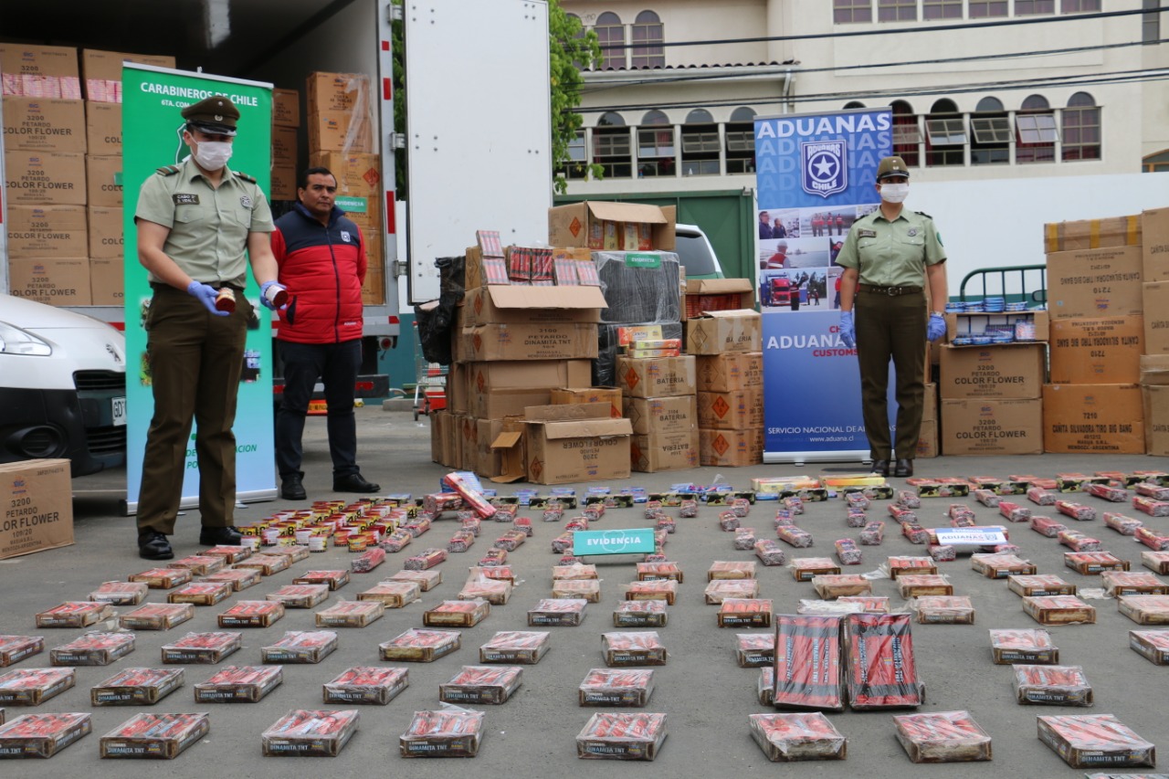 Por su parte, la Directora (s) Aduana Regional de Valparaíso, Edith Carrasco, indicó que “este procedimiento exitoso se suma al trabajo conjunto de Aduanas con las policías. Nos preocupamos de que las mercancías ingresen legalmente al país, pero fundamentalmente de proteger a las personas del ingreso de estos productos, como cigarrillos y fuegos artificiales, que son particularmente peligrosas para la ciudadanía”.