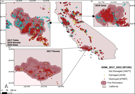 En relación con los orígenes del proyecto, denominado en español «Riesgo de incendio para estructuras en la interfaz urbano-forestal de California«, Daniel San Martín contó que la idea comenzó a principios del 2023 con la Dra. Maryam Zamanialaei, investigadora postdoctoral en UCB, quien tiene experiencia en repositorios de datos para incendios y sistemas de información geográfica.
